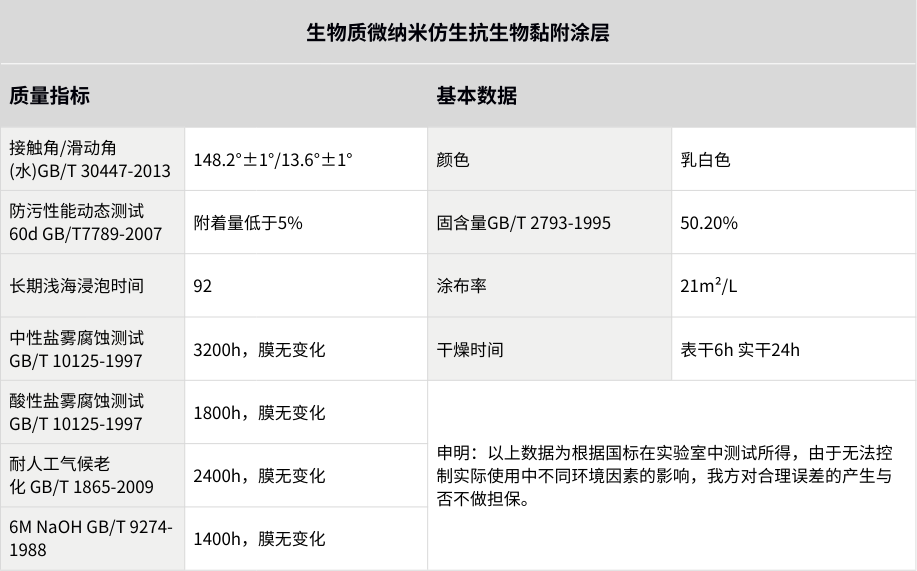 ● 微纳米仿生膜层减少藤壶、牡蛎等海洋生物附着;材料本身抑菌,有效降低细菌与微生物在表面的生长。